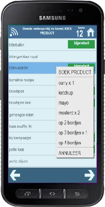 Item selectie is met enkel- of tweevoudige onderverdeling waarbij items alfabetisch of prijs gesorteerd zijn. Weergave is met lijsten of gekleurde knoppen voorzien van tekst, prijzen, afbeeldingen en of video afhankelijk wat van toepassing is.